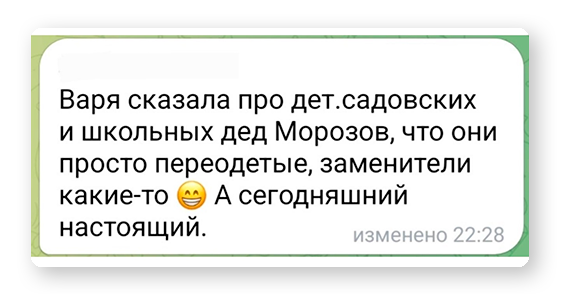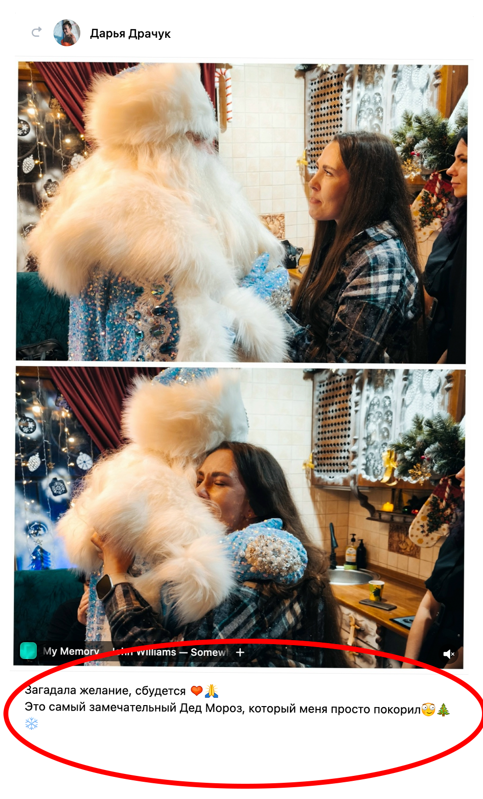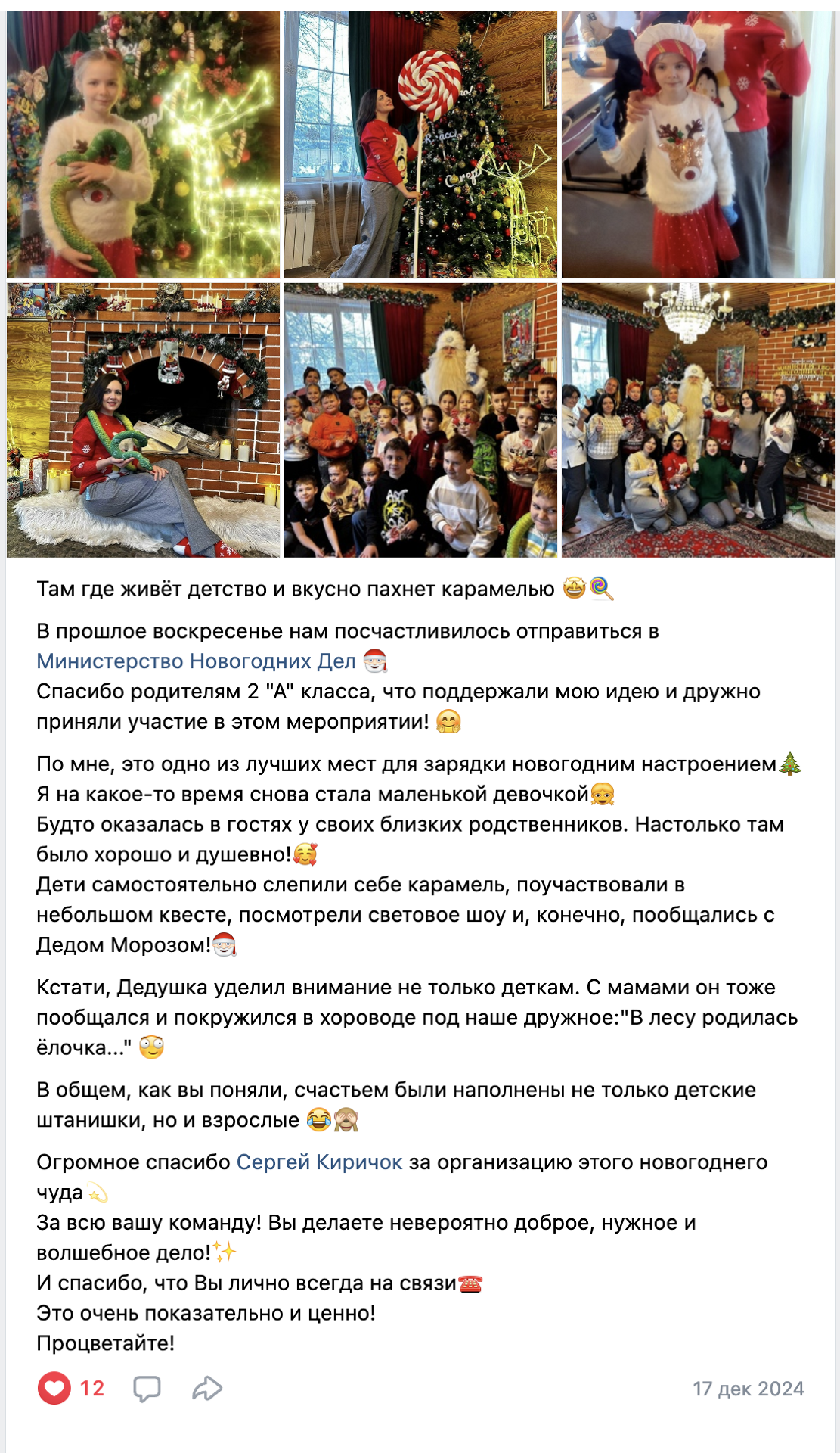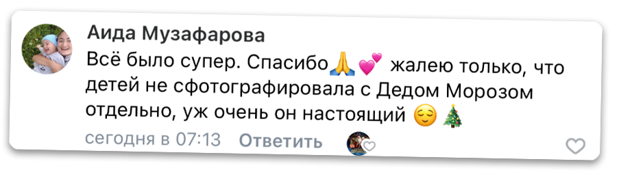Через специальный чат-бот вы отправите фото детей или целого класса прямо на пульт Деда Мороза! Дедушка докажет детям, что знает о них все! Это очень удивительный момент, который мы теперь никогда не уберем из программы!