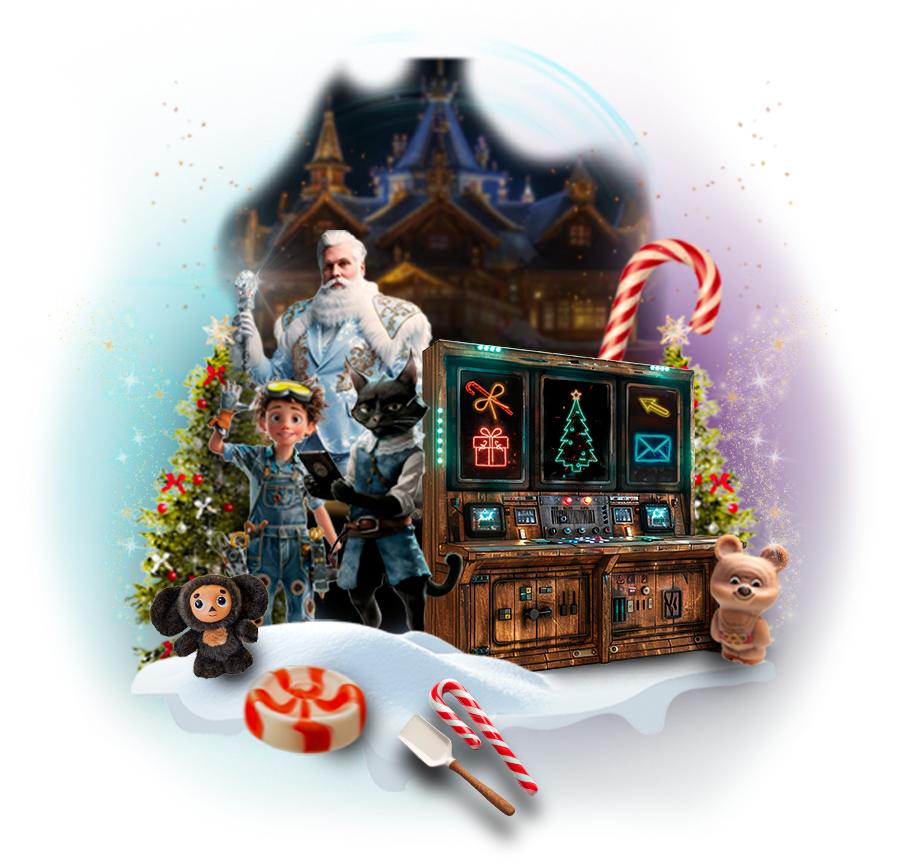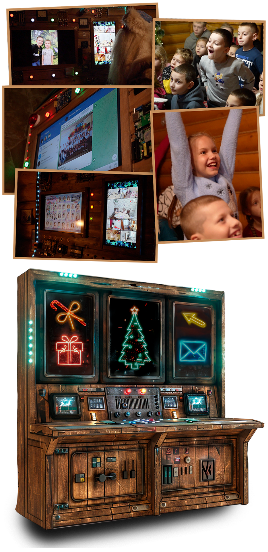 Антуражный и супердетализированный кабинет Деда Мороза. Здесь дети пообщаются с Дедом и поучаствуют в интерактиве с его смарт-пультом управления новогодними делами