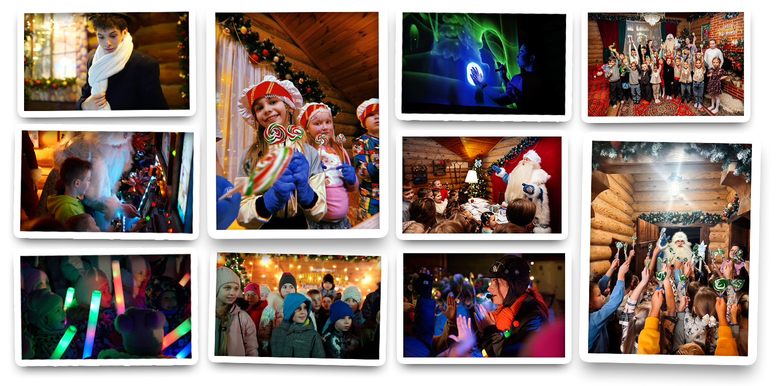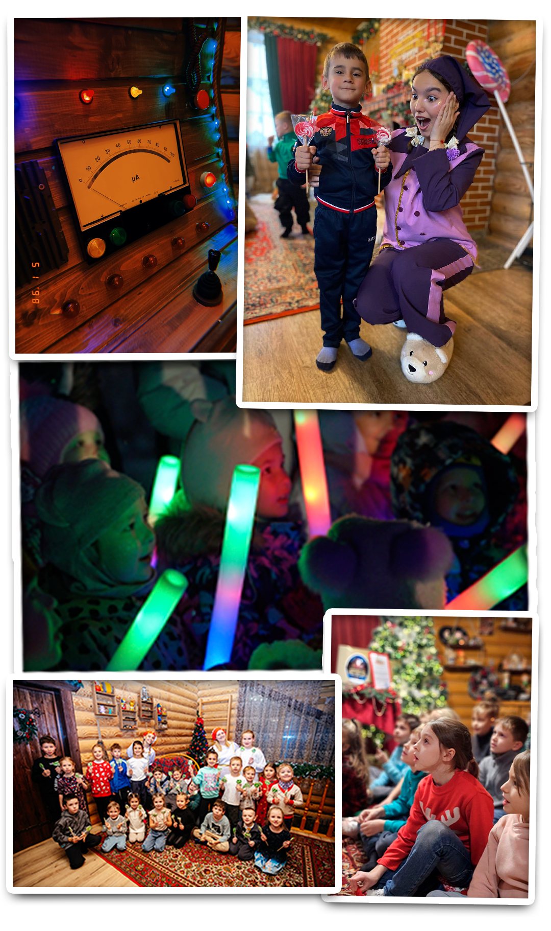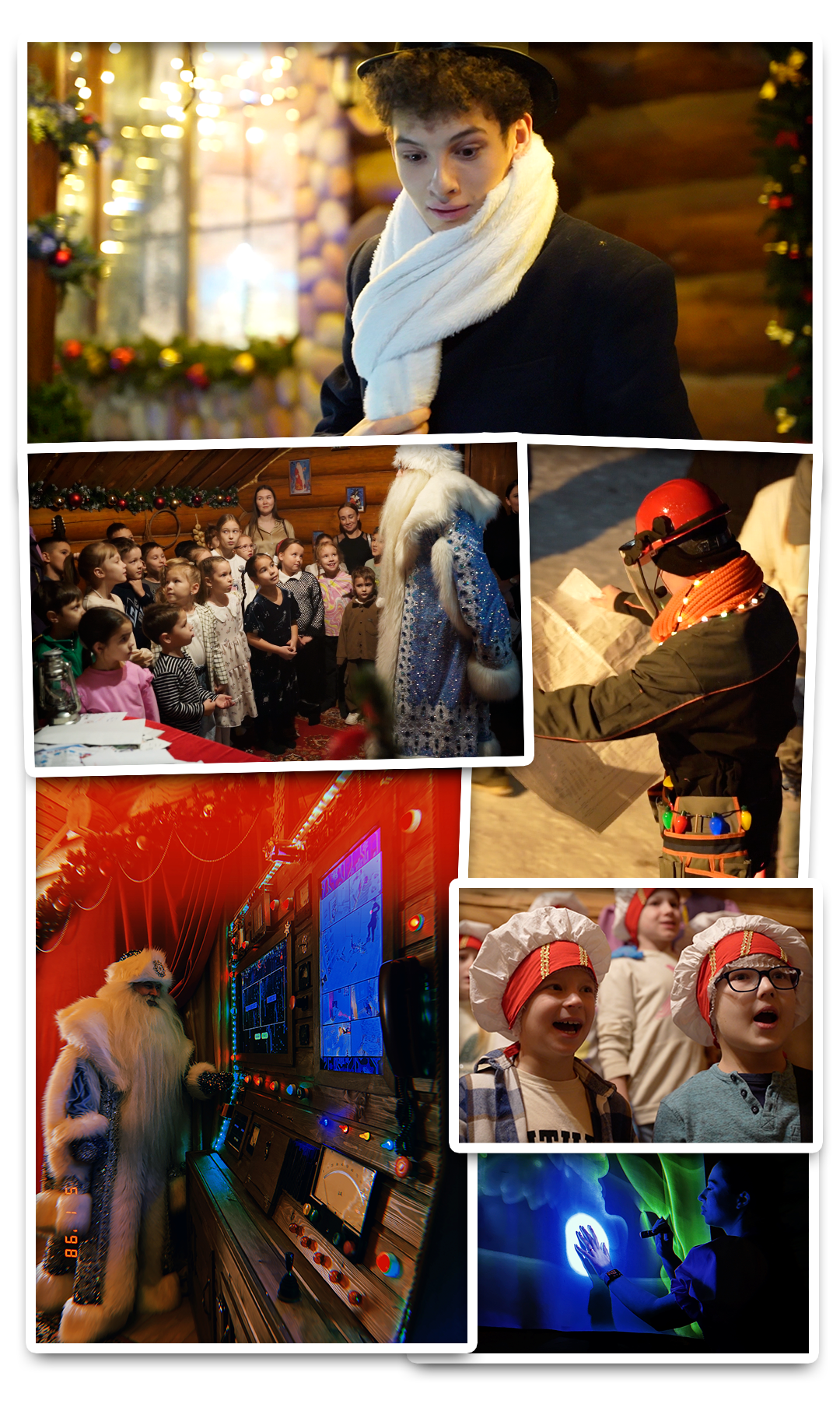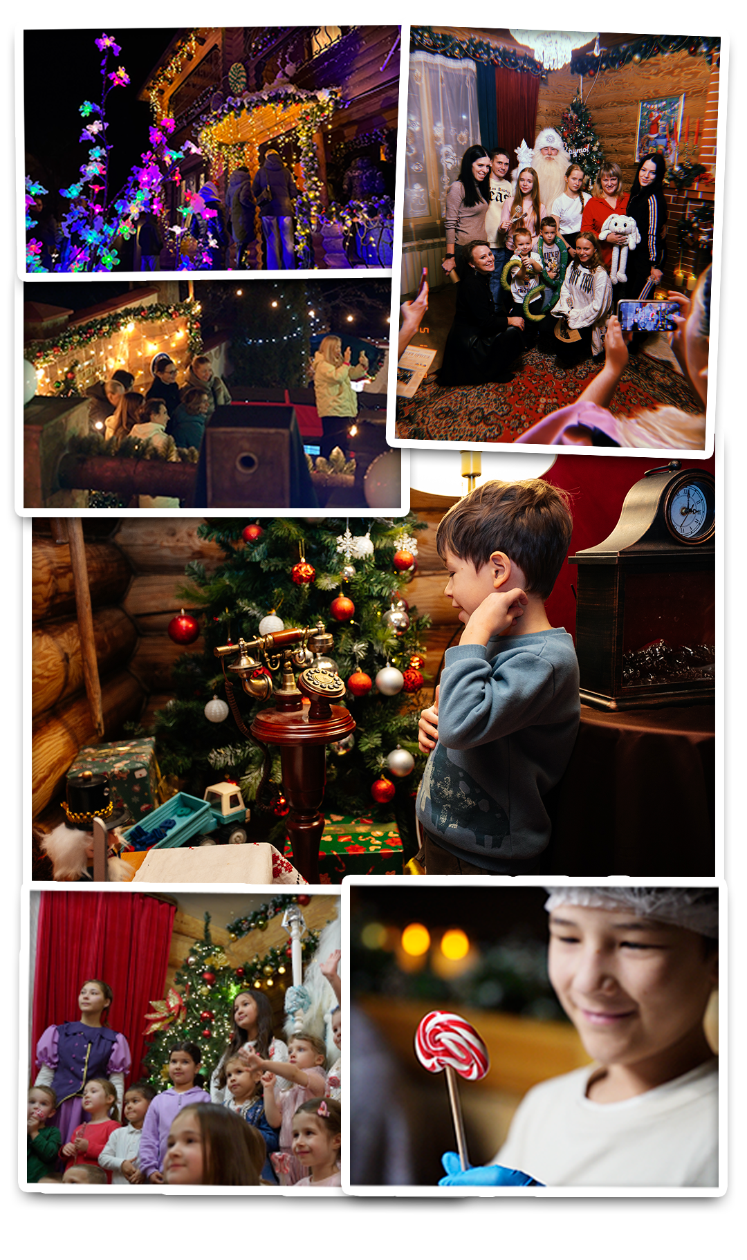Деток ждет путешествие в настоящий деревянный дом с волшебной атмосферой, новогодним интерьером и очень детализированным декором. Это не просто экскурсия, это целое приключение!