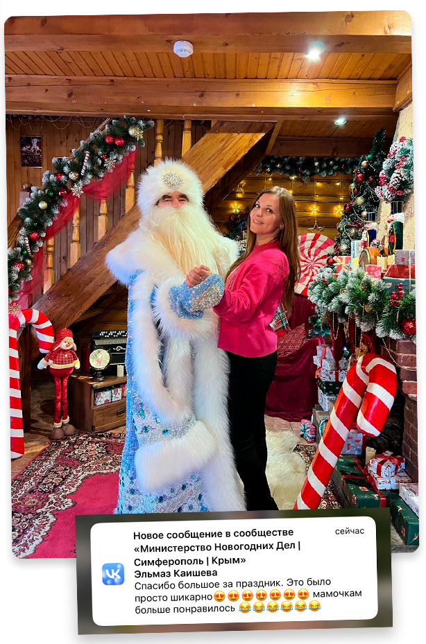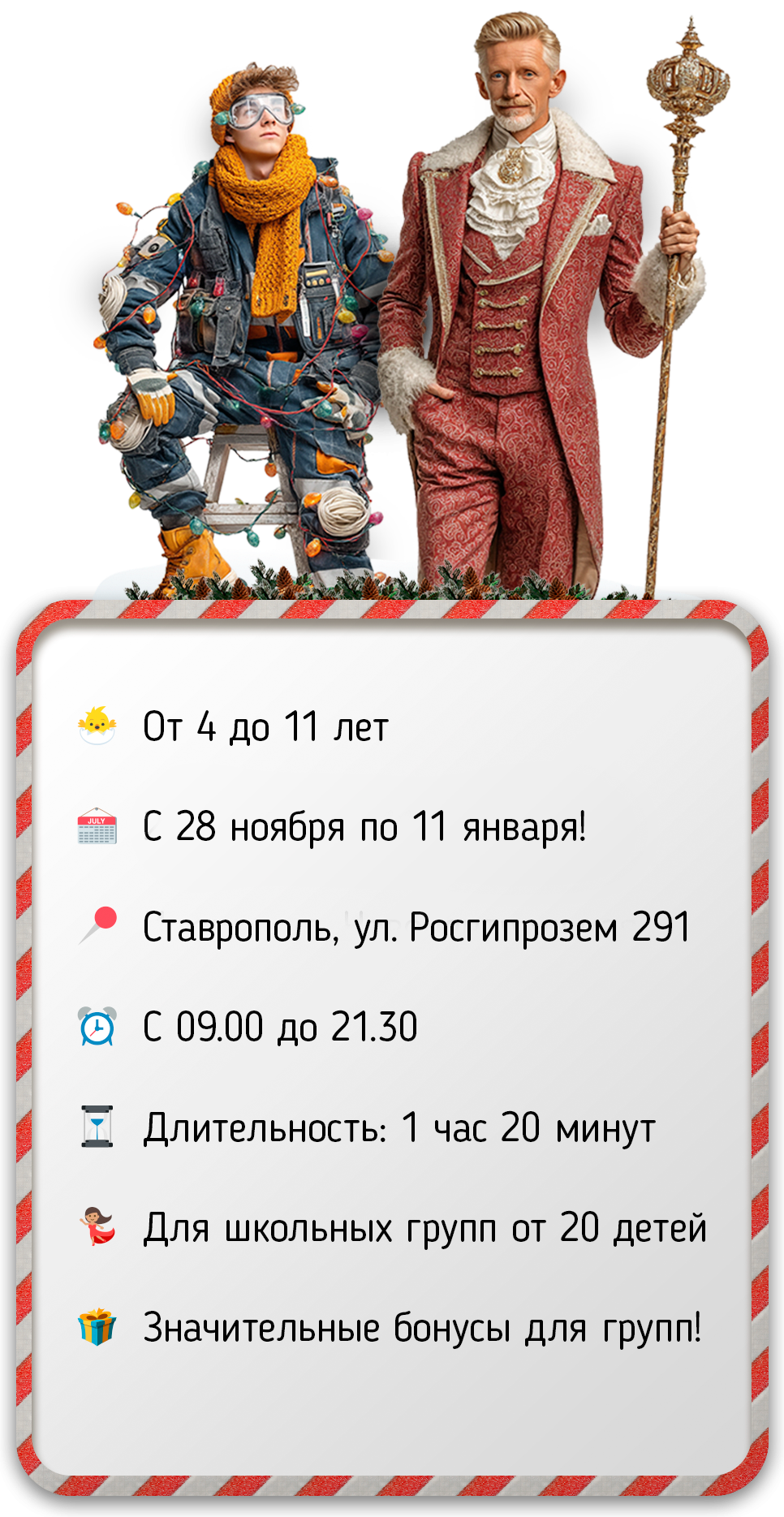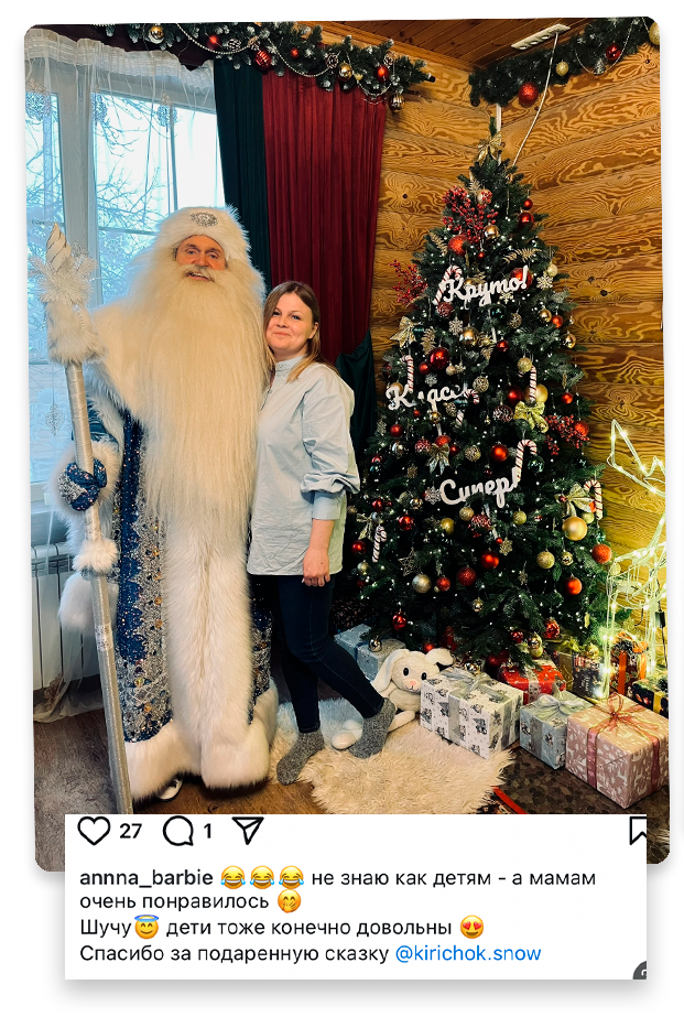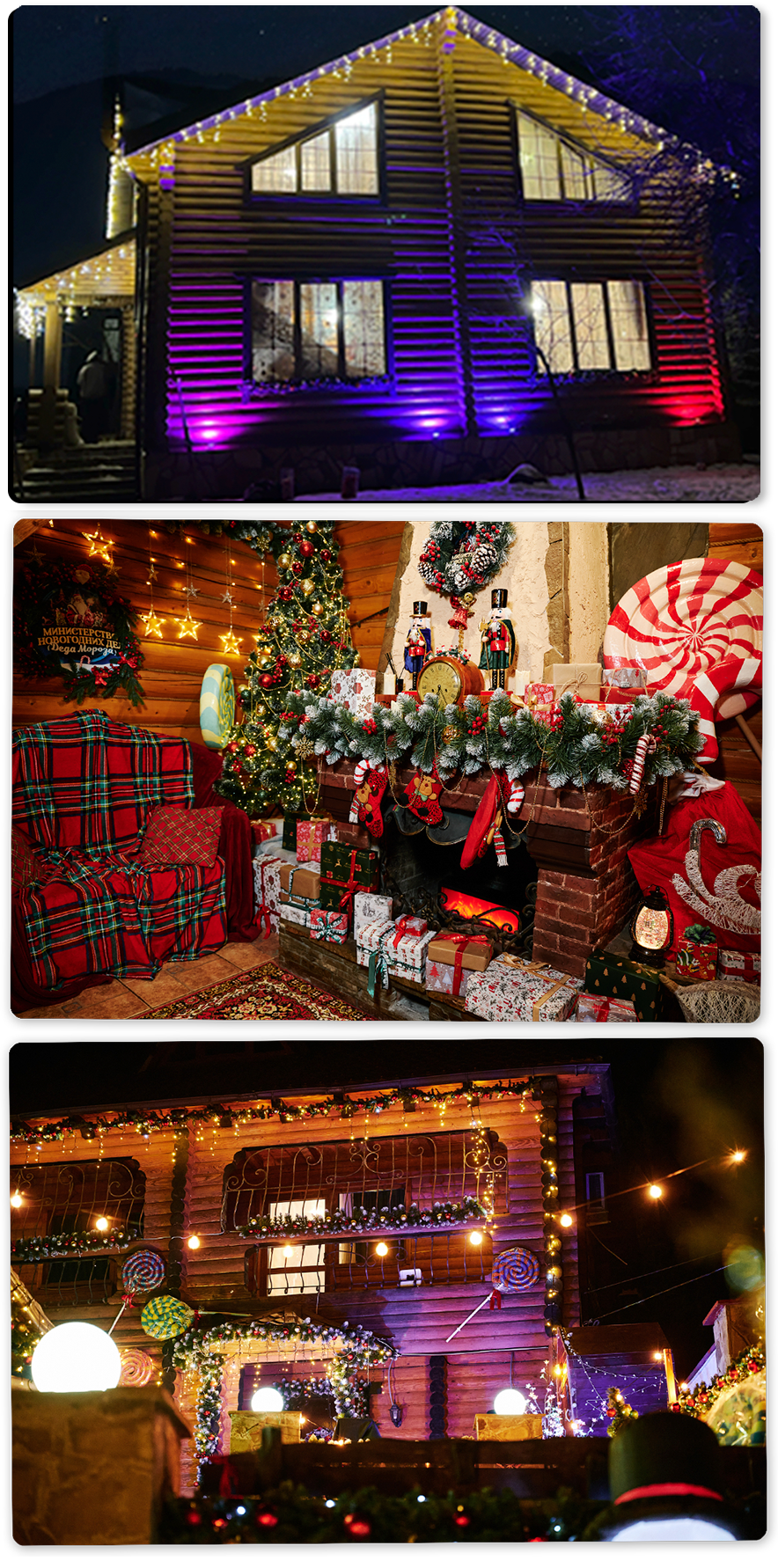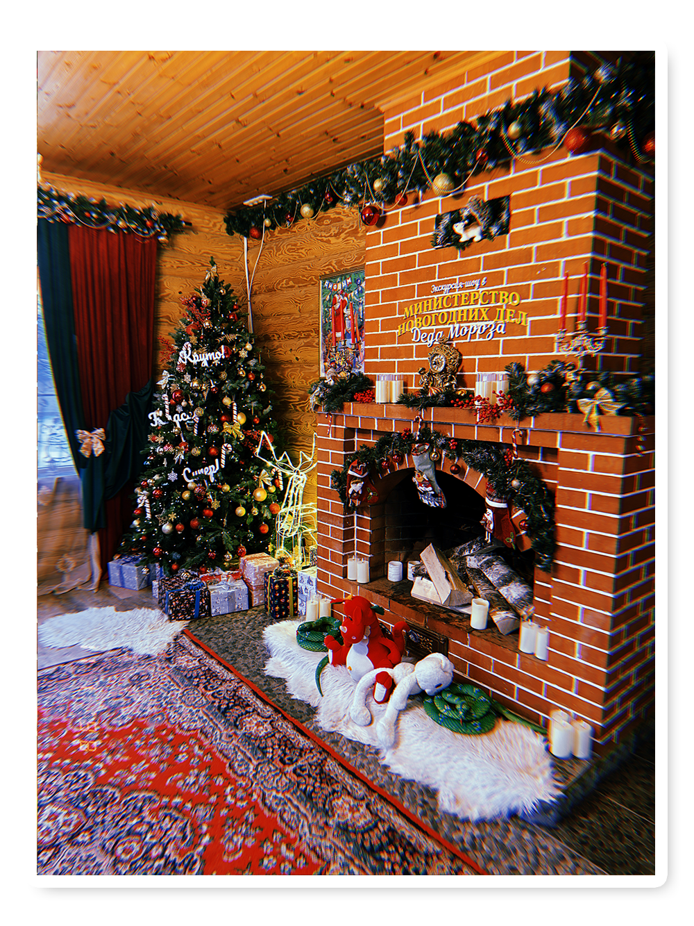 Деток ждет путешествие в настоящий деревянный дом с волшебной атмосферой, новогодним интерьером и очень детализированным декором. Это не просто экскурсия, это целое приключение!