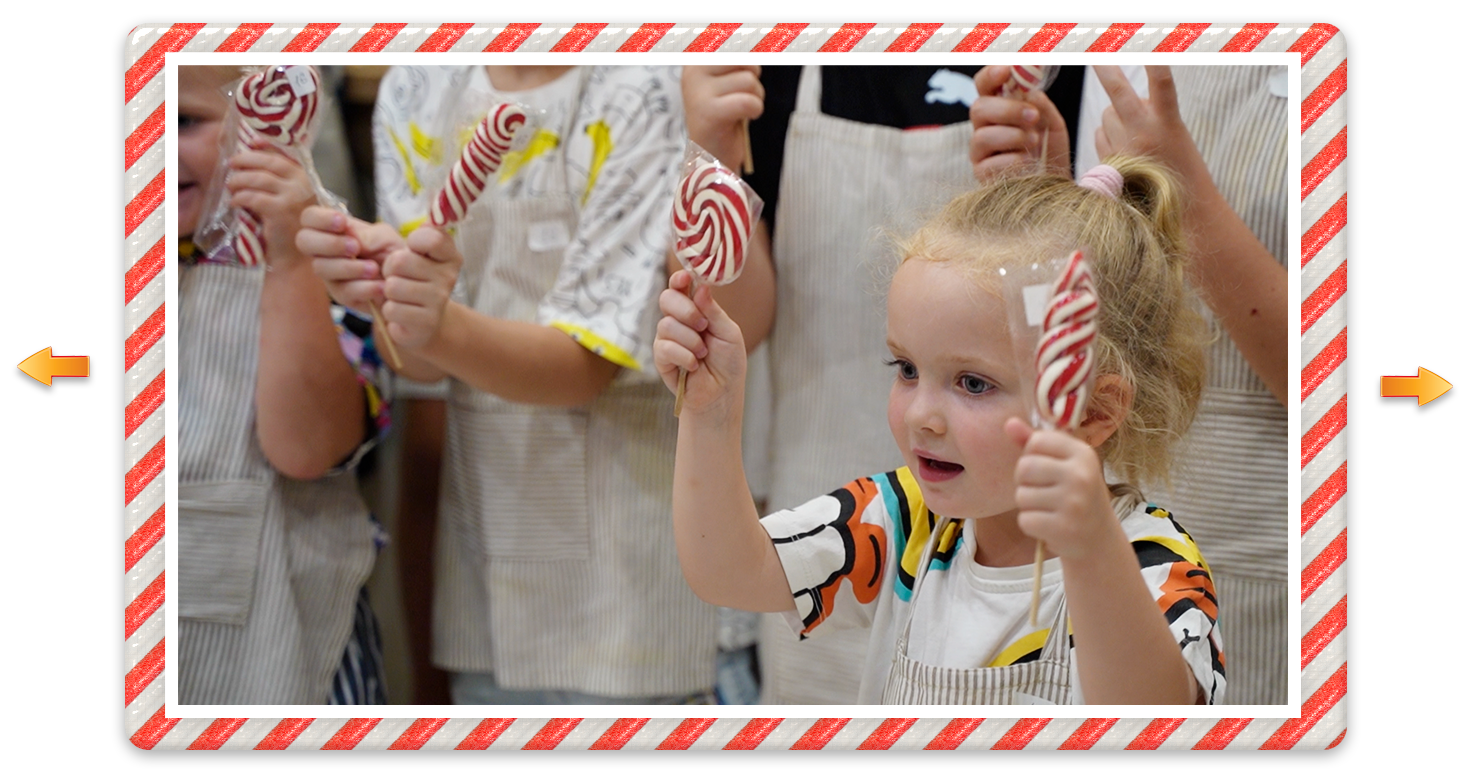 Дети делают леденцы на новом профессиональном оборудовании, с которым работают на реальных фабриках