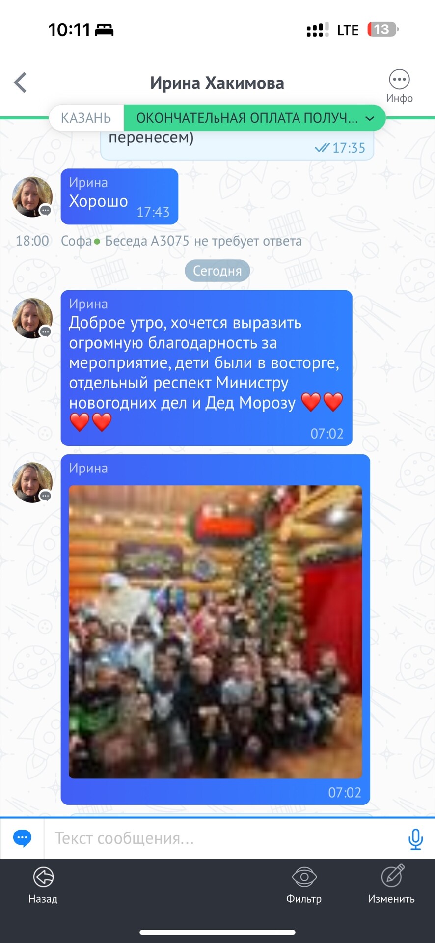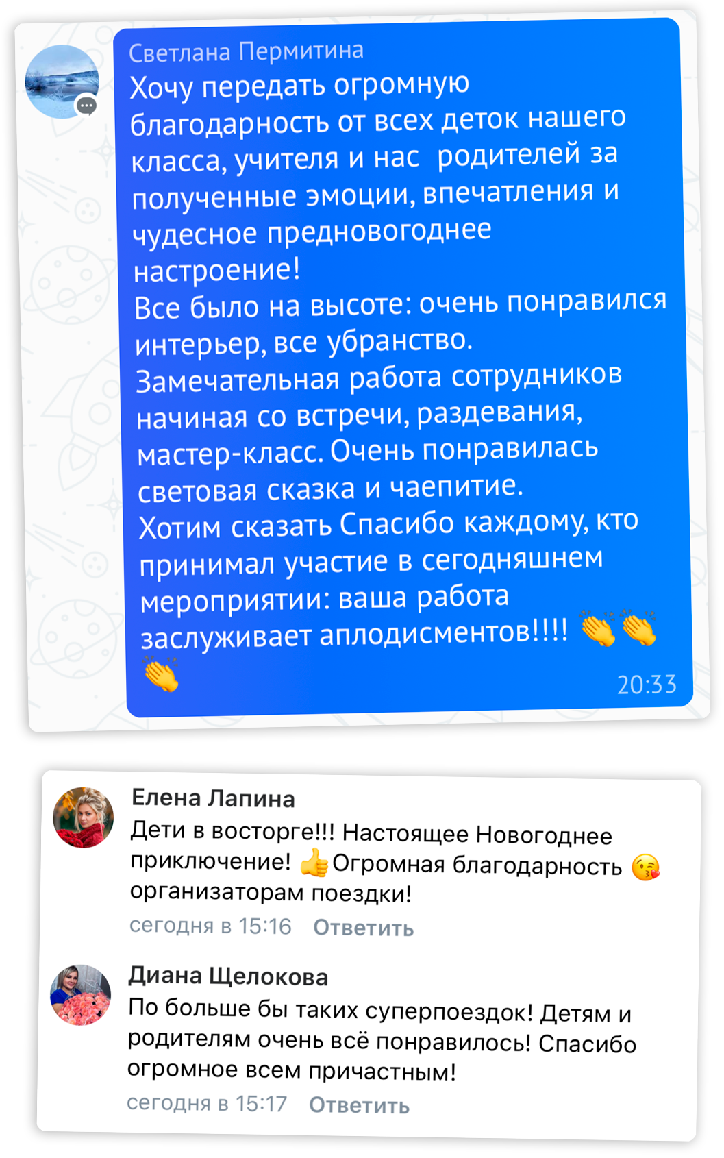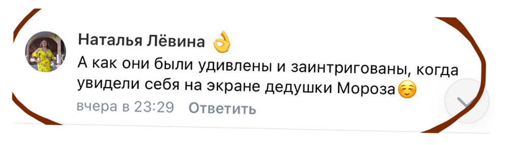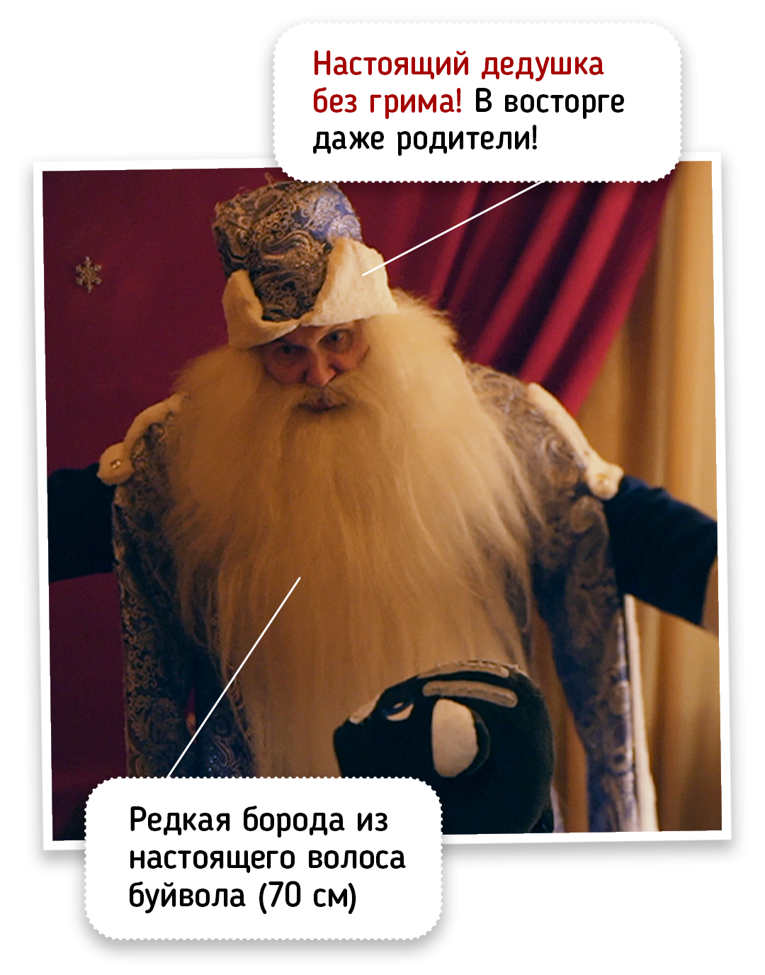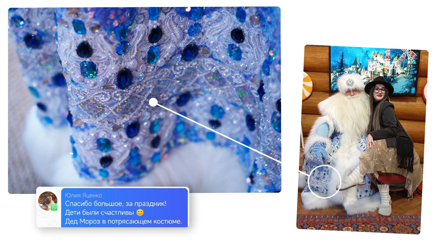 Через специальный чат-бот вы отправите фото детей или целого класса прямо на пульт Деда Мороза! Дедушка докажет детям, что знает о них все! Это очень удивительный момент, который мы теперь никогда не уберем из программы!