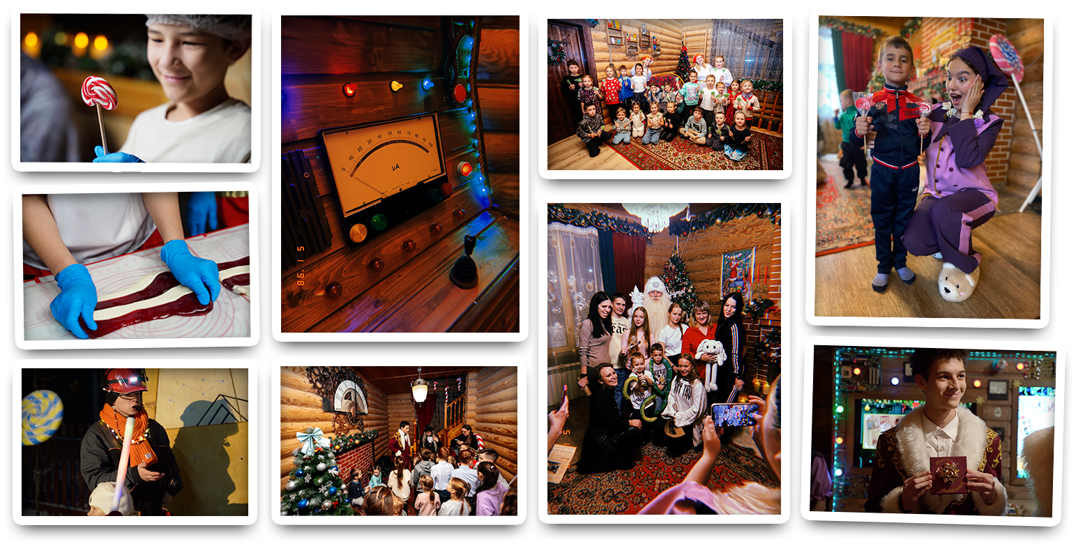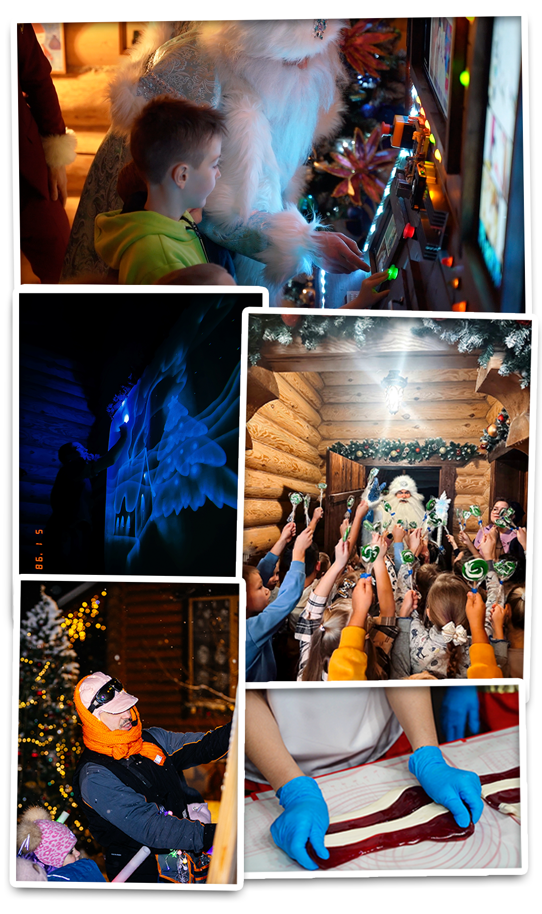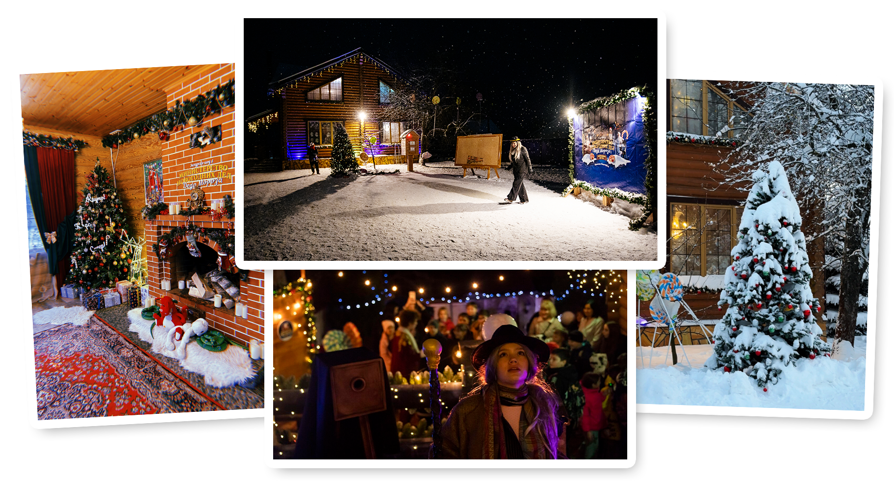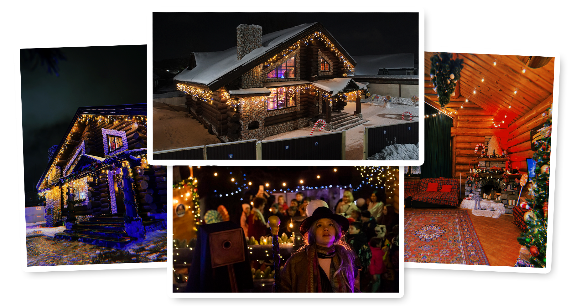 Деток ждет путешествие в настоящий деревянный дом с волшебной атмосферой, новогодним интерьером и очень детализированным декором. Это не просто экскурсия, это целое приключение!