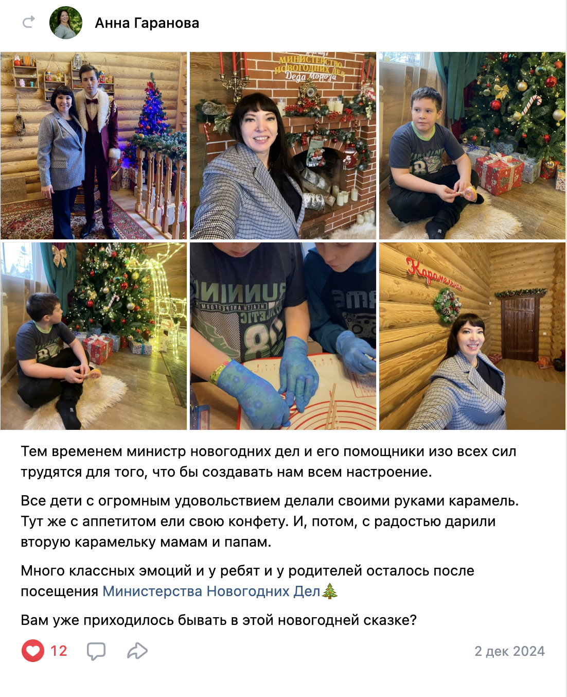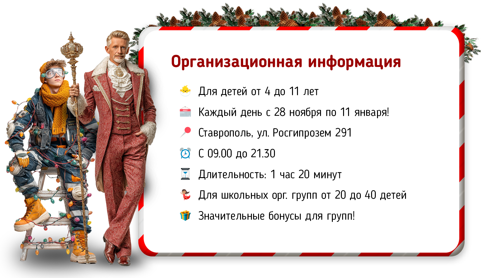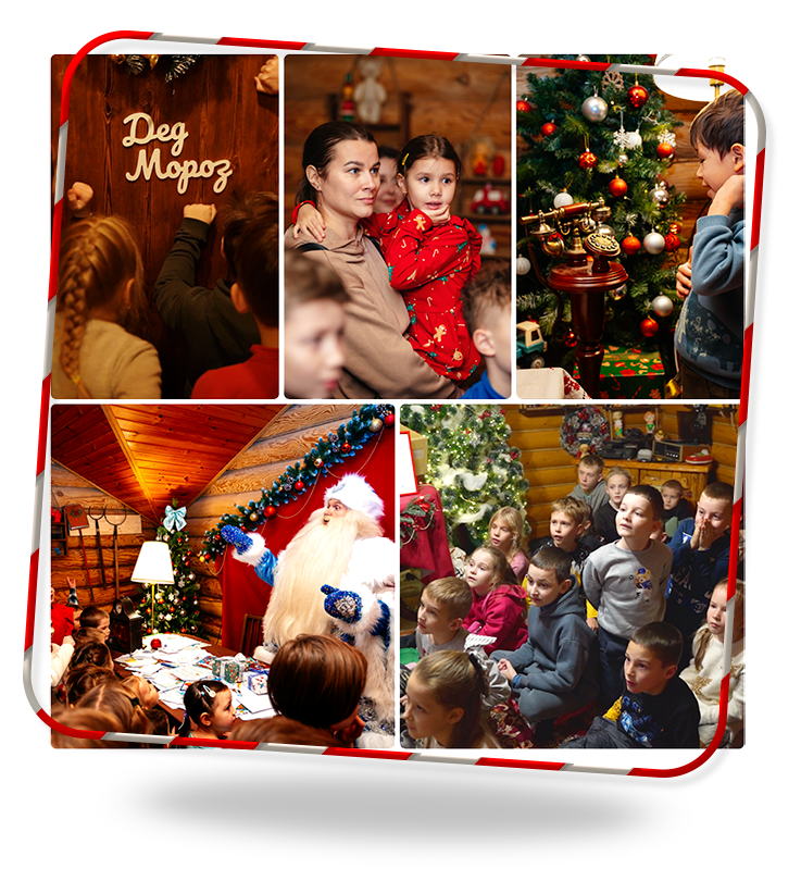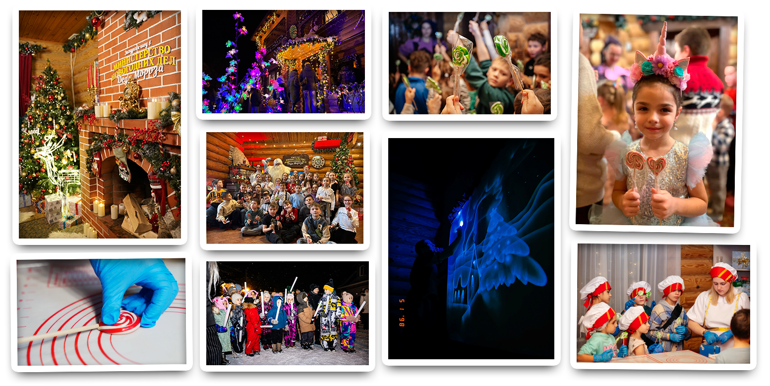 Деток ждет путешествие в настоящий деревянный дом с волшебной атмосферой, новогодним интерьером и очень детализированным декором. Это не просто экскурсия, это целое приключение!